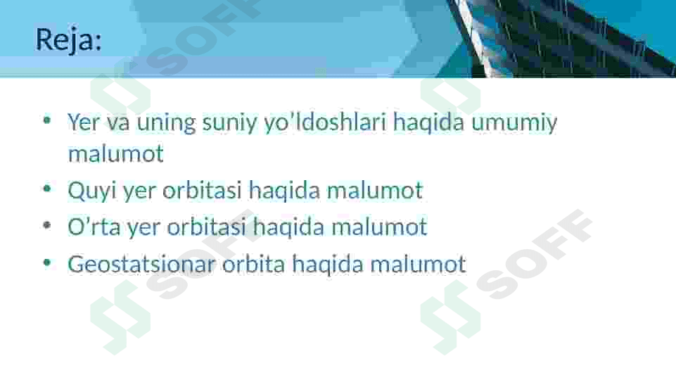 •Yer va uning suniy yo’ldoshlari haqida umumiy malumot