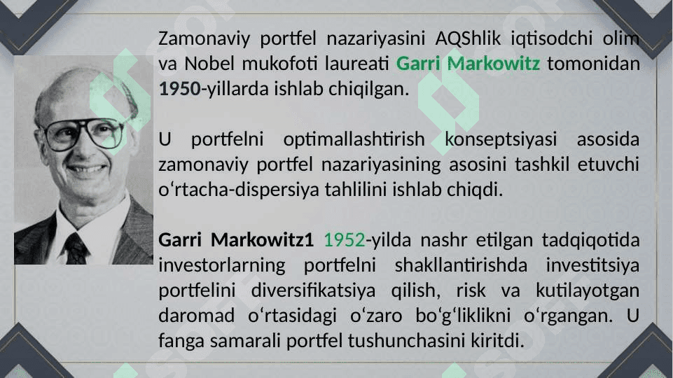 PORTFELNI SHAKLLANTIRISH MODELLARI