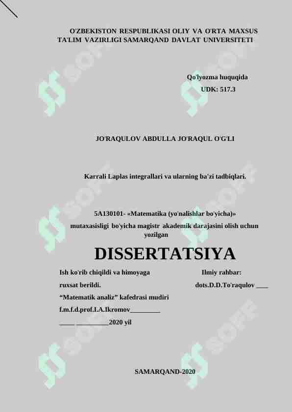 Karrali Laplas integrallari va ularning ba'zi tadbiqlari