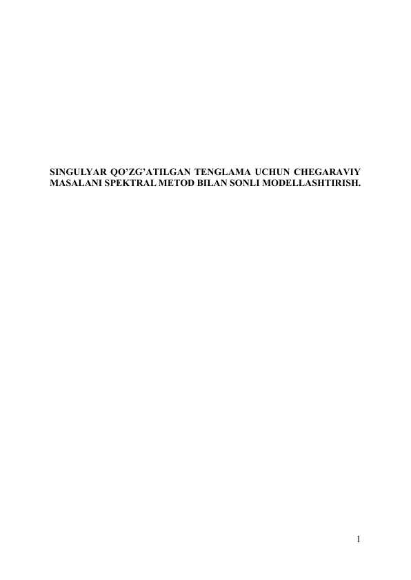 SINGULYАR QO’ZG’АTILGАN TЕNGLАMА UCHUN CHЕGАRАVIY MАSАLАNI SPЕKTRАL MЕTOD BILАN SONLI MODЕLLАSHTIRISH.