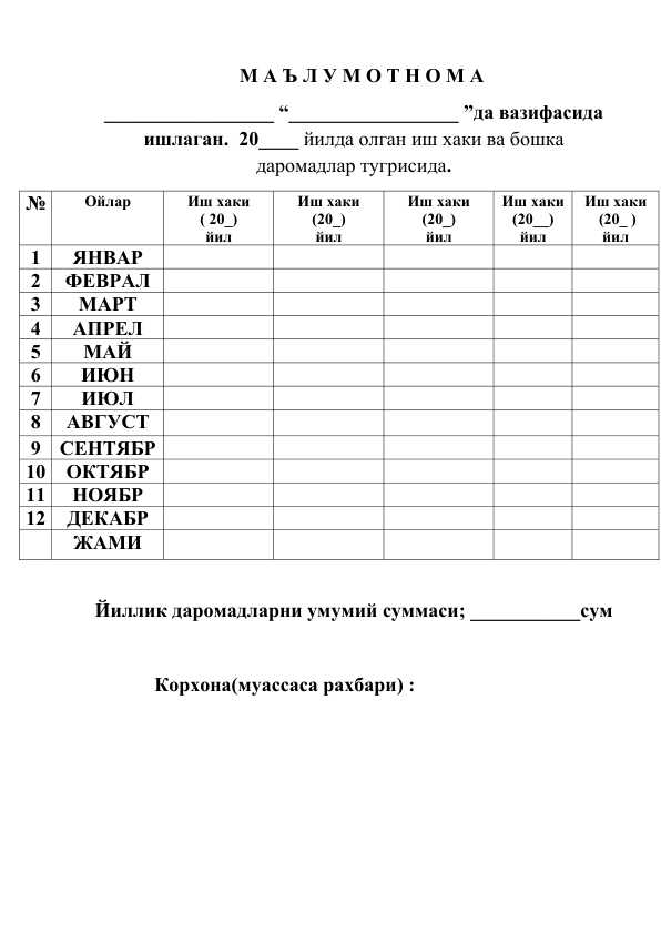 oddiy ariza jadvali