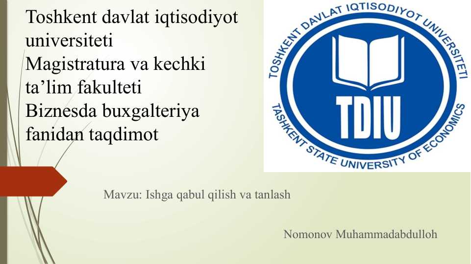 TaqdimotlarKurs ishlariMustaqil ishlarDiplom ishlariBlankalarBiznes rejalarElektron kitoblarStatistikaMaqolaPlakatlarLoyihalarIjodiy IshlarAmaliy ishlarDasturlash tillariNamunaviy hujjatlarO'quv qo'llanmalarTarqatma materiallarDars ishlanmalarTestlarReferatlarIxtiro patentiDissertatsiya ishlariLabaratoriya Ishlari
