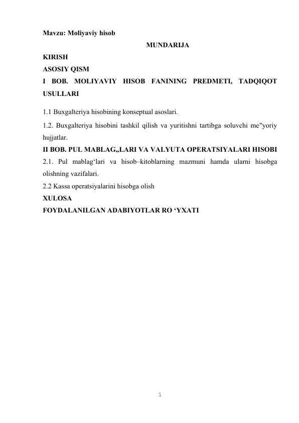 PUL MABLAG‘LARI VA XORIJIY VALYUTA HISOBI