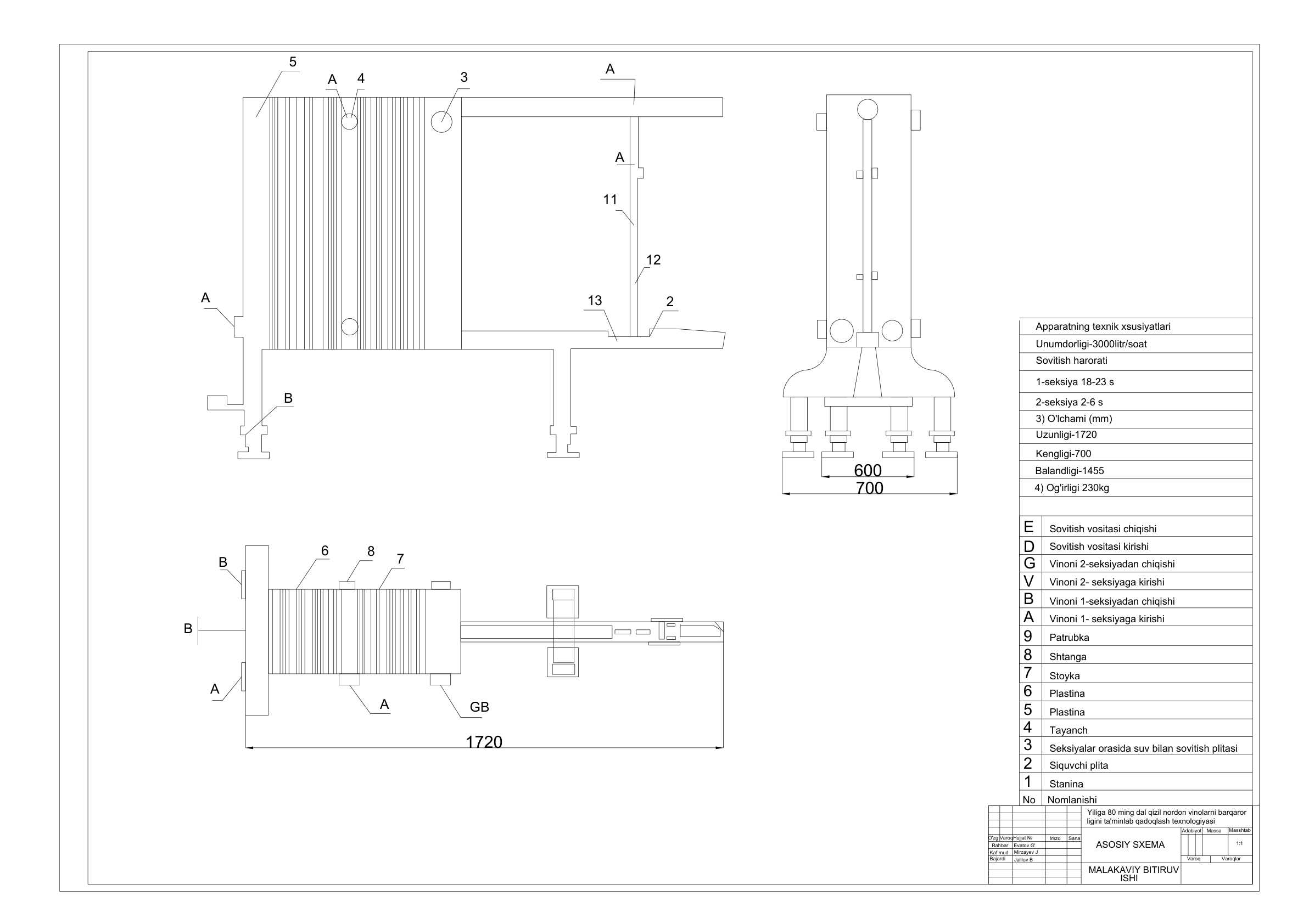 vati 360 t/kun bo‘lgan tegirmonda 2- navli 78% (Oliy hamda 1-nav) un ishlab chiqarish texnologiyasini tashkil etish. (Oqlash uskunasi) mavzusidagi bitiruv malakaviy ishining