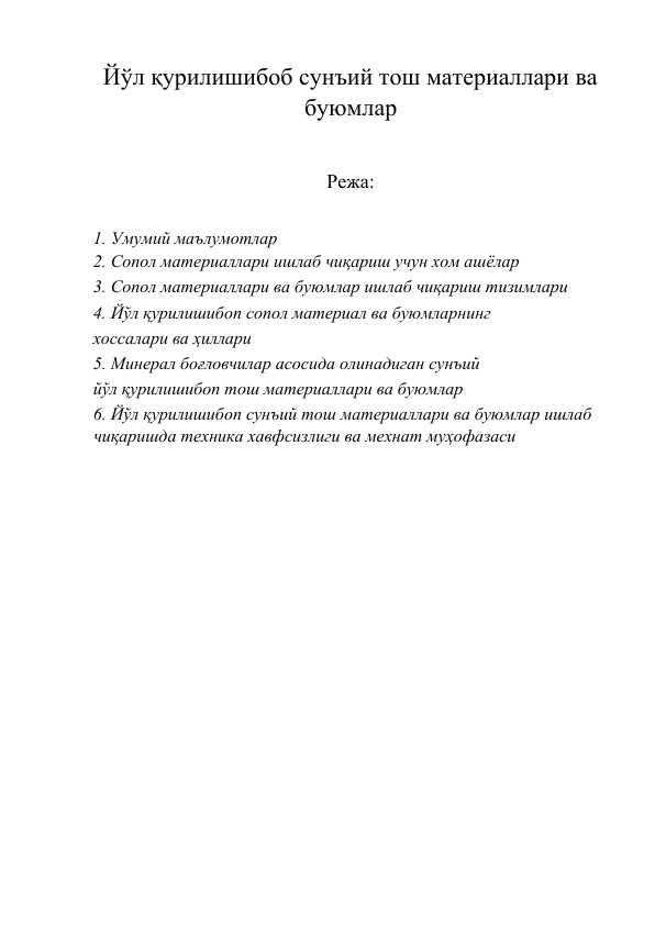 Йўл қурилишибоб сунъий тош материаллари ва буюмлар