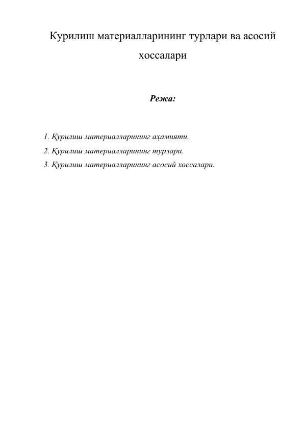 Кишлок хужалиги курилишида кенг кулланиладиган курилиш материаллари хакида умумий маълумотлар