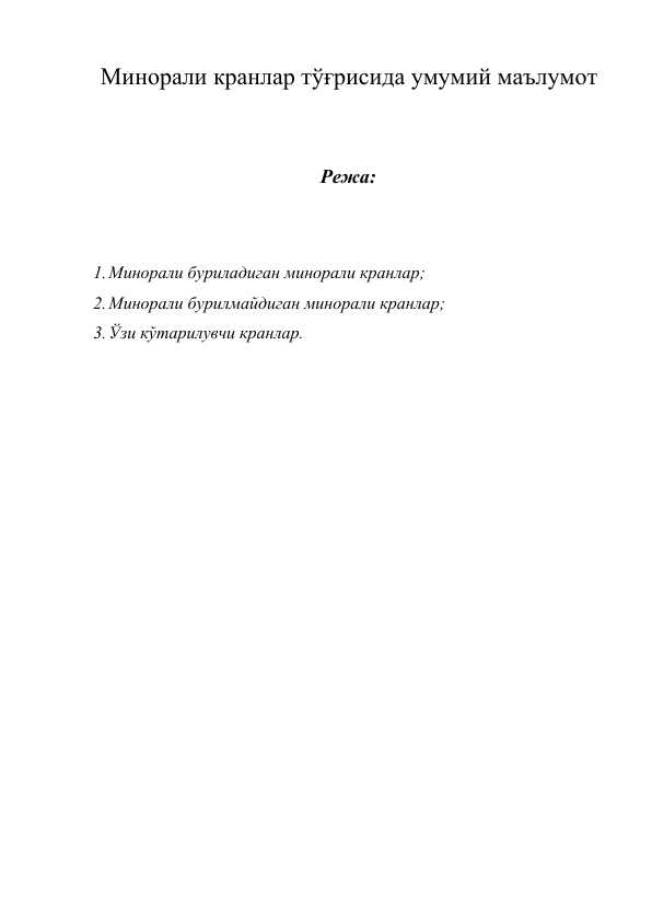 TaqdimotlarKurs ishlariMustaqil ishlarDiplom ishlariBlankalarBiznes rejalarElektron kitoblarStatistikaMaqolaPlakatlarLoyihalarIjodiy IshlarAmaliy ishlarDasturlash tillariNamunaviy hujjatlarO'quv qo'llanmalarTarqatma materiallarDars ishlanmalarTestlarReferatlarIxtiro patentiDissertatsiya ishlariLabaratoriya Ishlari