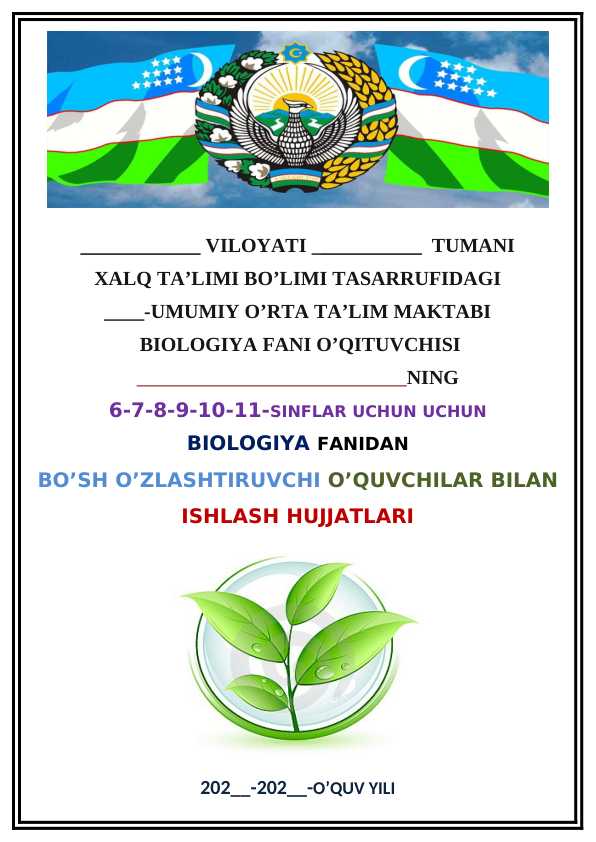 BIOLOGIYA FANIDAN BO’SH O’ZLASHTIRUVCHI O’QUVCHILAR BILAN ISHLASH HUJJATLAR