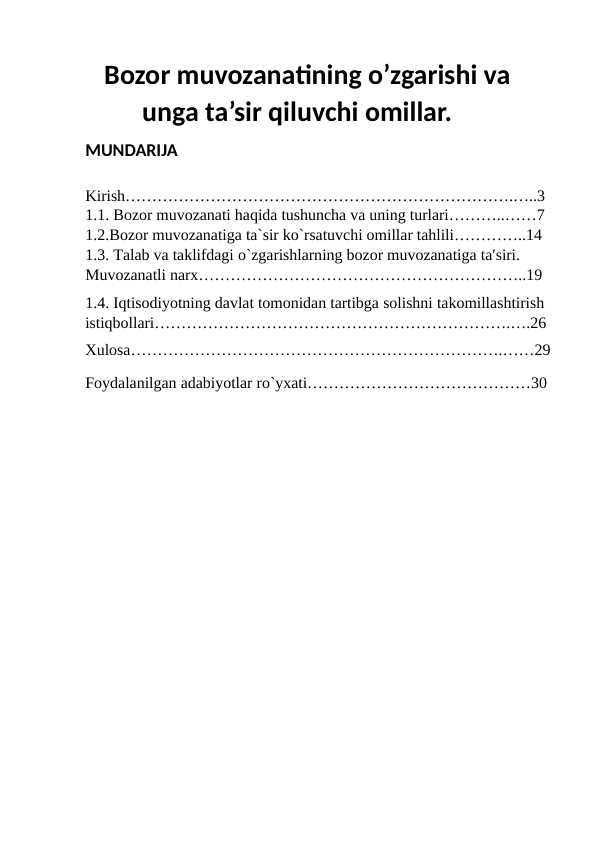 Bozor muvozanatining o’zgarishi va unga ta’sir qiluvchi omillar.