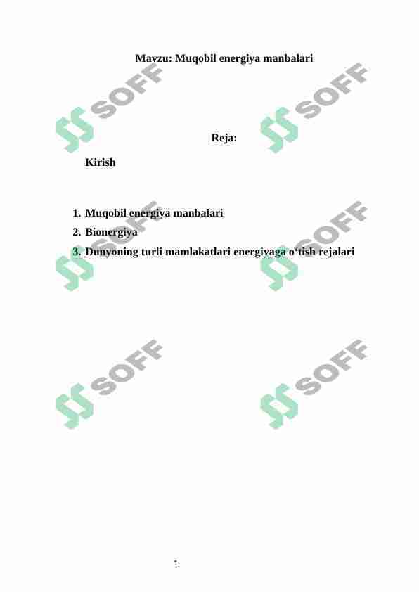 Alternativ Muqobil energiya olish va undan foydalanish