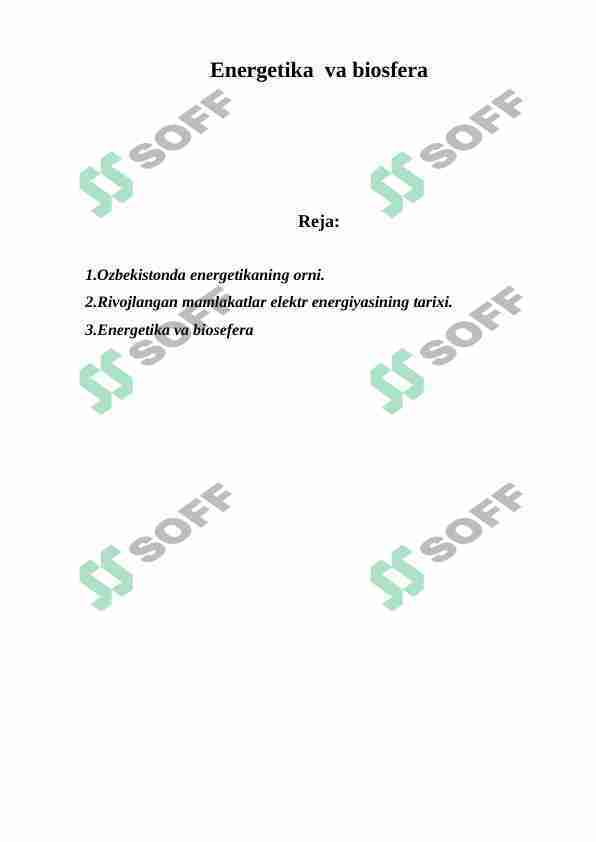 Jaxon energiya istemolining o’sishi va energiyaga qo’yiladigan narx. Dunyo mamlakatlari va O’zbekiston energetikasi.