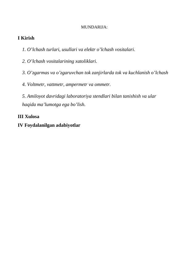 O’lchash turlari, usullari va elektr o’lchash vositalari.