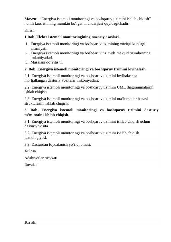 Energiya istemoli monitoringi va boshqaruv tizimini ishlab chiqish