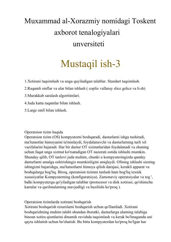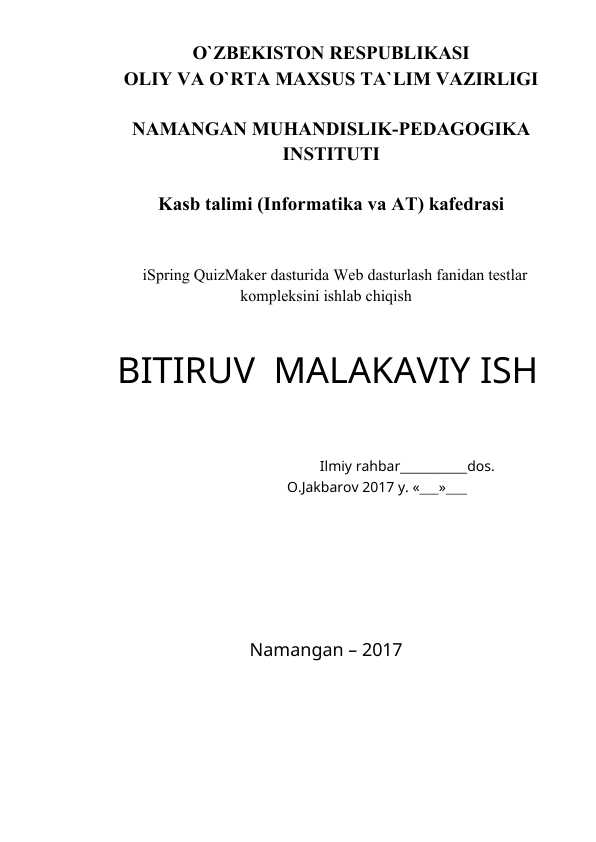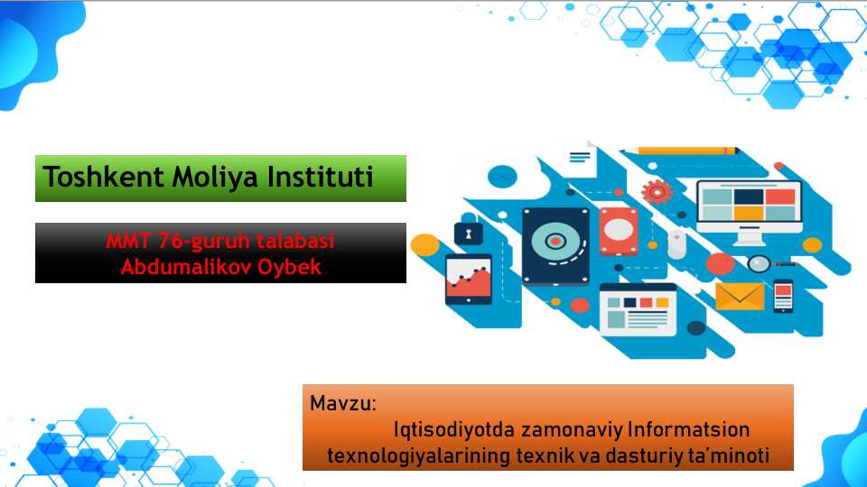 TaqdimotlarKurs ishlariMustaqil ishlarDiplom ishlariBlankalarBiznes rejalarElektron kitoblarStatistikaMaqolaPlakatlarLoyihalarIjodiy IshlarAmaliy ishlarDasturlash tillariNamunaviy hujjatlarO'quv qo'llanmalarTarqatma materiallarDars ishlanmalarTestlarReferatlarIxtiro patentiDissertatsiya ishlariLabaratoriya Ishlari
