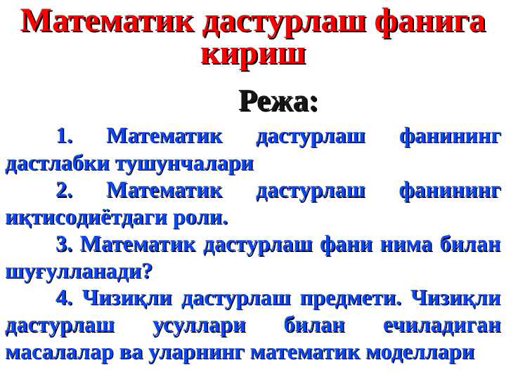 TaqdimotlarKurs ishlariMustaqil ishlarDiplom ishlariBlankalarBiznes rejalarElektron kitoblarStatistikaMaqolaPlakatlarLoyihalarIjodiy IshlarAmaliy ishlarDasturlash tillariNamunaviy hujjatlarO'quv qo'llanmalarTarqatma materiallarDars ishlanmalarTestlarReferatlarIxtiro patentiDissertatsiya ishlariLabaratoriya Ishlari