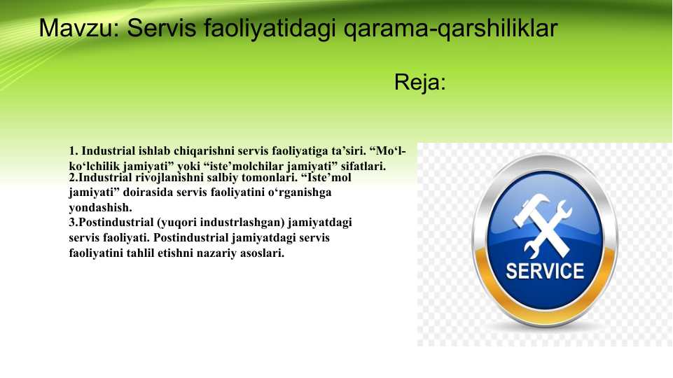 TaqdimotlarKurs ishlariMustaqil ishlarDiplom ishlariBlankalarBiznes rejalarElektron kitoblarStatistikaMaqolaPlakatlarLoyihalarIjodiy IshlarAmaliy ishlarDasturlash tillariNamunaviy hujjatlarO'quv qo'llanmalarTarqatma materiallarDars ishlanmalarTestlarReferatlarIxtiro patentiDissertatsiya ishlariLabaratoriya Ishlari