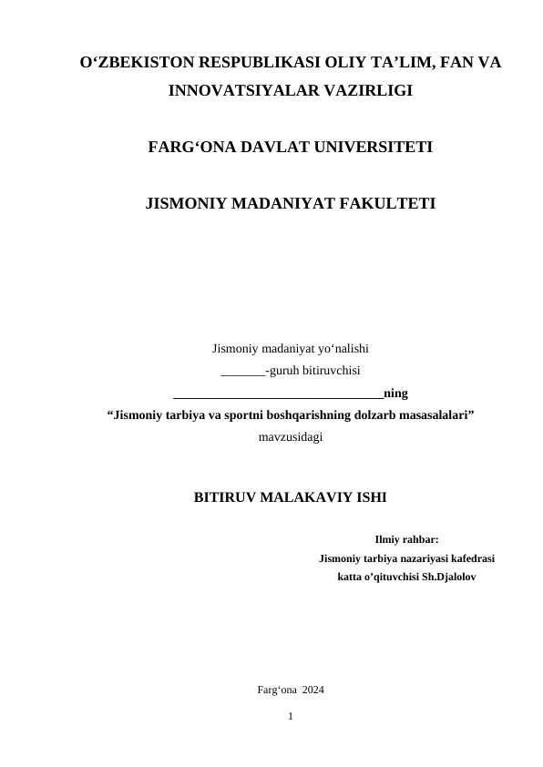 Jismoniy tarbiya va sportni boshqarishning dolzarb masasalalari bitiruv malakaviy ish BMI