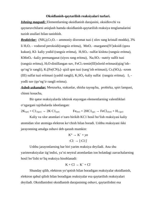 Oksidlaniish-qaytarilish reaksiyalarida muhitning roli
