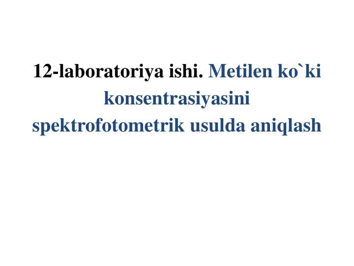 laboratoriya ishi. Metilen ko`ki konsentrasiyasini spektrofotometrik usulda aniqlash