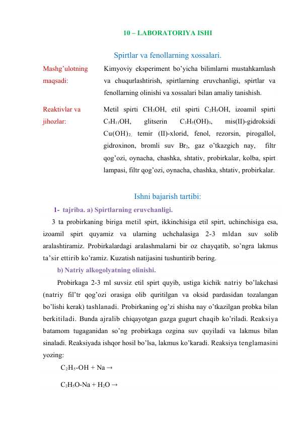 Spirtlar va fenollarning xossalari.
