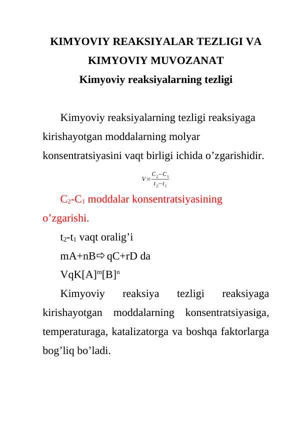 Kimyoviy reaksiyalar tezligi va kimyoviy muvozanat