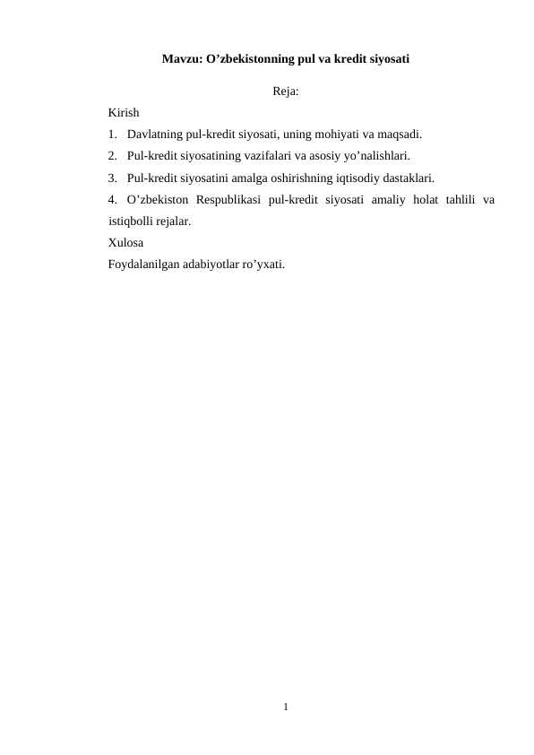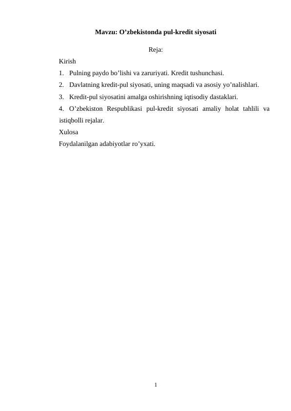 Xalqaro pul kredit munosabatlari va ulari tartibga solish