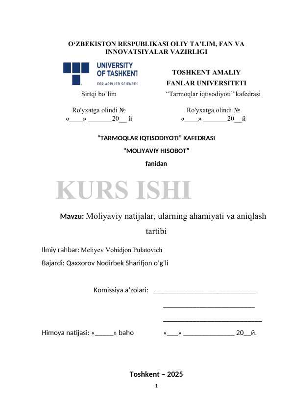 TaqdimotlarKurs ishlariMustaqil ishlarDiplom ishlariBlankalarBiznes rejalarElektron kitoblarStatistikaMaqolaPlakatlarLoyihalarIjodiy IshlarAmaliy ishlarDasturlash tillariNamunaviy hujjatlarO'quv qo'llanmalarTarqatma materiallarDars ishlanmalarTestlarReferatlarIxtiro patentiDissertatsiya ishlariLabaratoriya Ishlari