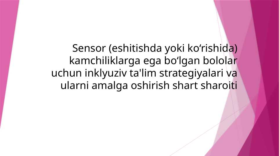 Sensor (eshitishda yoki ko‘rishida) kamchiliklarga ega bo‘lgan bololar uchun inklyuziv ta'lim strategiyalari va ularni amalga oshirish shart sharoiti