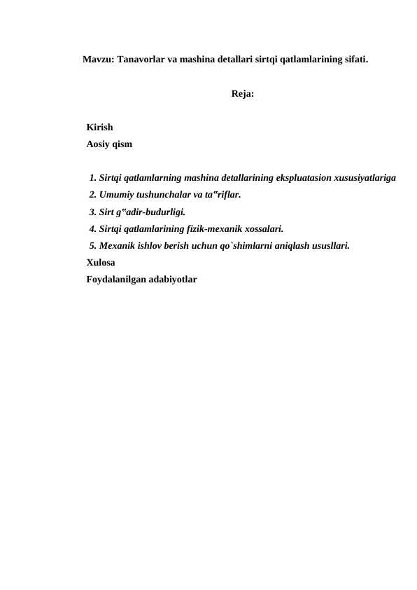 Mashina detallari to'g'risida umumiy ma’lumotlar, uzatmalar