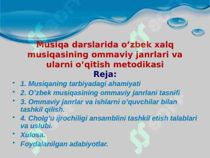5-sinf musiqa O’zbek musiqasida opera janri dars ishlanma