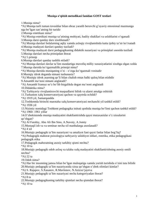 O'zbek musiqa tarixi fanidan GOST testlari 100 ta