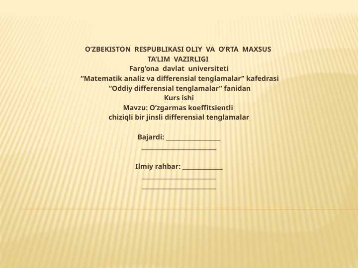 BIRINCHI TARTIBLI CHIZIQLI DIFFERENSIAL TENGLAMALAR