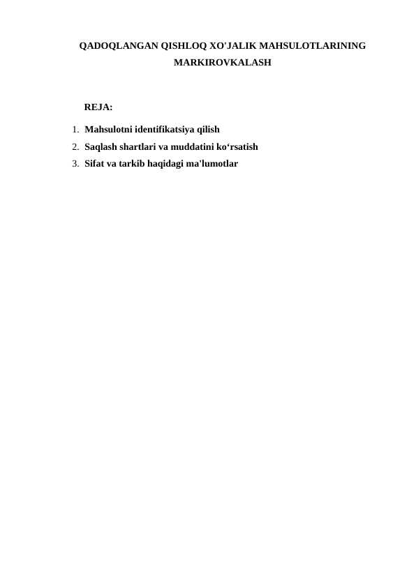 TaqdimotlarKurs ishlariMustaqil ishlarDiplom ishlariBlankalarBiznes rejalarElektron kitoblarStatistikaMaqolaPlakatlarLoyihalarIjodiy IshlarAmaliy ishlarDasturlash tillariNamunaviy hujjatlarO'quv qo'llanmalarTarqatma materiallarDars ishlanmalarTestlarReferatlarIxtiro patentiDissertatsiya ishlariLabaratoriya Ishlari
