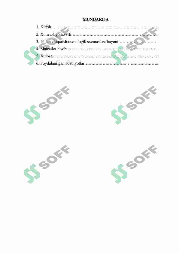 SO’X TUMANIDA KIMYOVIY TOLA ASOSLI GAZLAMALAR ISHLAB CHIQARISH KORXONASINING loyihasi