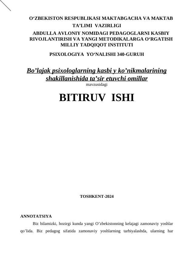 O’SMIRLIK YOSHIDA SHAXSNING SHAKLLANISHI