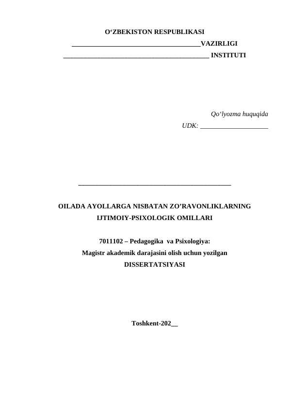 OILADA AYOLLARGA NISBATAN ZO’RAVONLIKLARNING IJTIMOIY-PSIXOLOGIK OMILLARI