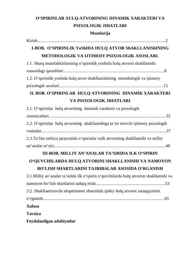 “OʻSPIRINLAR XULQ-ATVORINING DINAMIK XARAKTERI VA PSIXOLOGIK JIHATLARI” MAVZUSIDAGI MAGISTRLIK DISSERTATSIYASI