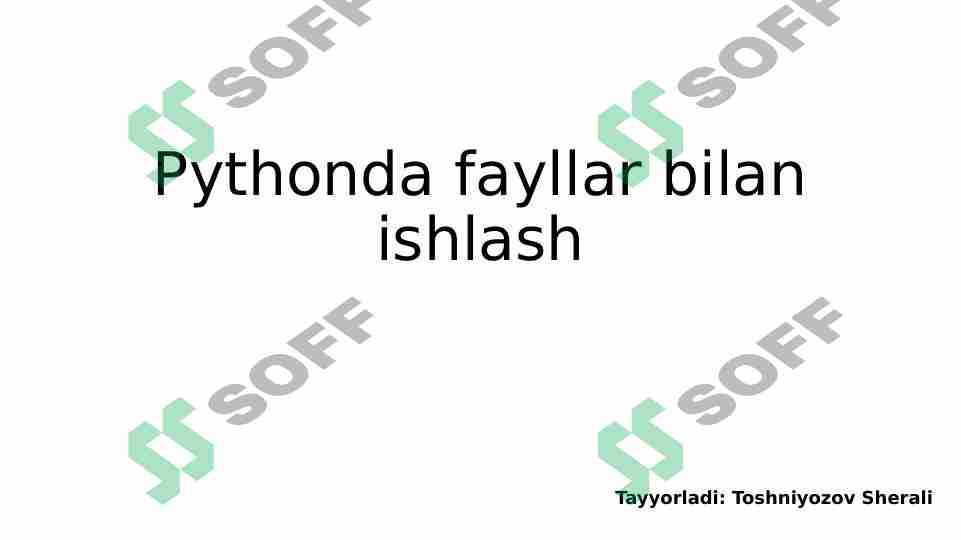 TaqdimotlarKurs ishlariMustaqil ishlarDiplom ishlariBlankalarBiznes rejalarElektron kitoblarStatistikaMaqolaPlakatlarLoyihalarIjodiy IshlarAmaliy ishlarDasturlash tillariNamunaviy hujjatlarO'quv qo'llanmalarTarqatma materiallarDars ishlanmalarTestlarReferatlarIxtiro patentiDissertatsiya ishlariLabaratoriya Ishlari