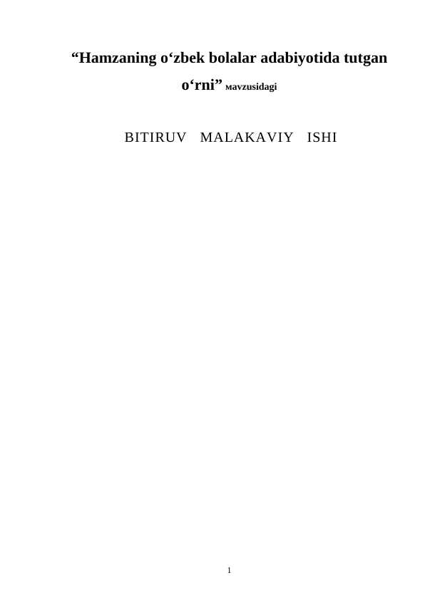 HOZIRGI O‘ZBEK ADABIYOTIDA BERUNIY OBRAZINING YANGICHA TALQINI.BITIRUV MALAKAVIY ISHI