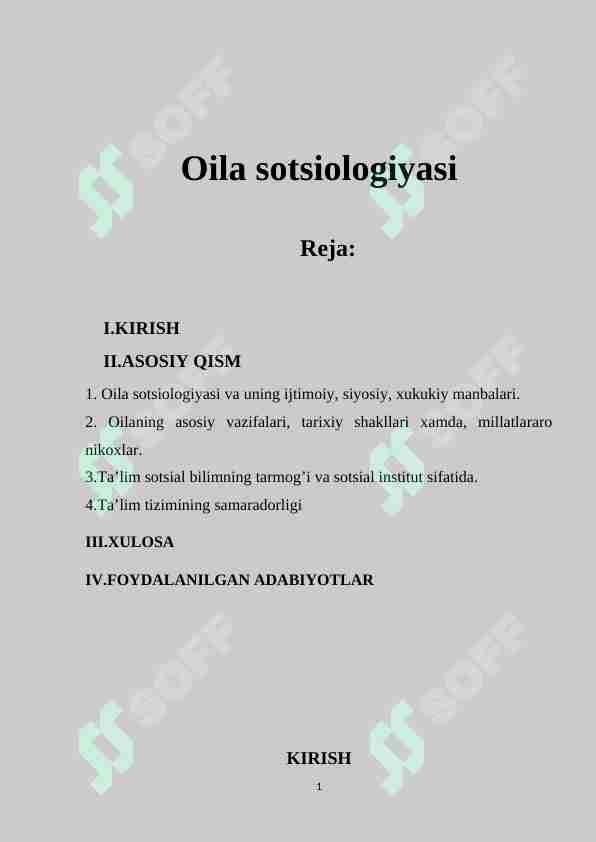 Oilaga qaratilgan ijtimoiy siyosat mohiyati va shakllari