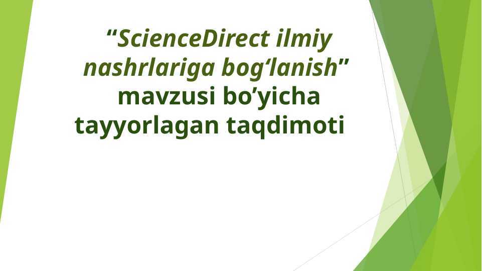 ScienceDirect ilmiy nashrlariga bog‘lanish