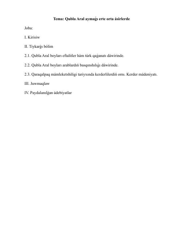 Qoraqalpog'iston tarixi bo'yica mustaqil ish