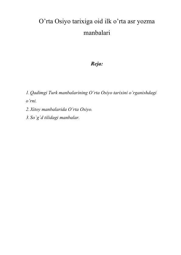 MARKAZIY OSIYO HUDUDIDAGI QADIMGI YO‘LLAR