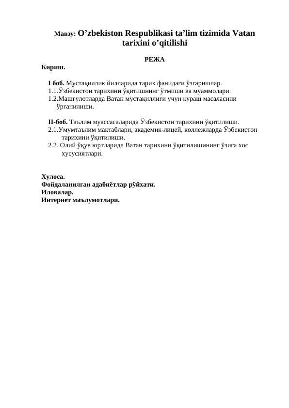 O’zbekiston respublikasi ta’lim tizimi tarixi