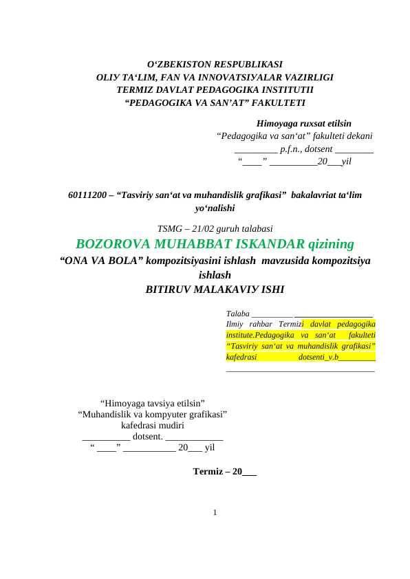 “ОNА VА BОLА” kоmроzіtsіуаsіnі іshlаsh mаvzusіdа kоmроzіtsіуа іshlаsh