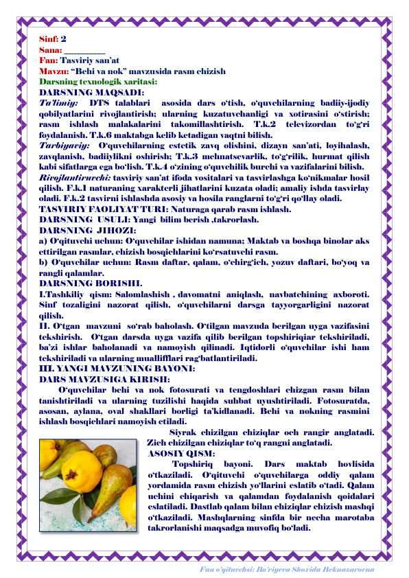 DARS ISHLANMA_2-SINF_6-mavzu: Behi va nok‖ mavzusida rasm chizish