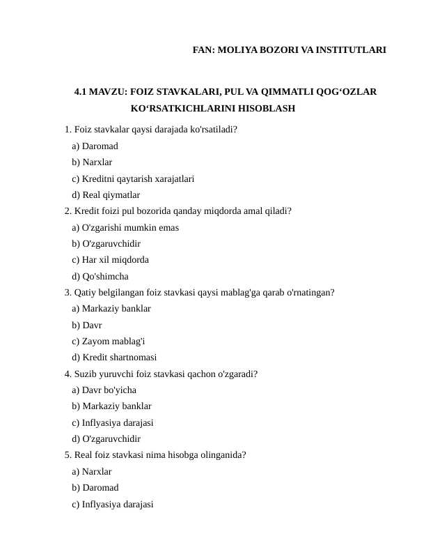 MOLIYA FANIDAN NAZORAT SAVOLLARI МОЛИЯ ФАНИДАН НАЗОРАТ САВОЛЛАРИ MOLIYA FANIDAN NAZORAT SAVOLLARI МОЛИЯ ФАНИДАН НАЗОРАТ САВОЛЛАРИ