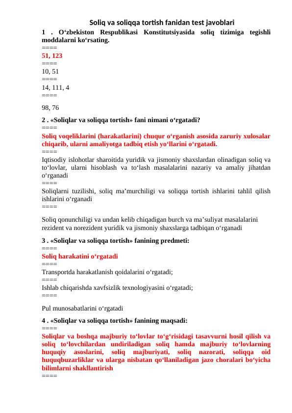 SOLIQ VA SOLIQQA TORTISH SAVOL VA JAVOBLARI docx