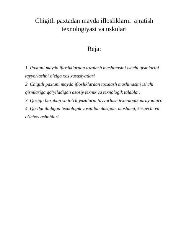 KURS ISHI Mavzu: Quvvati 3.1 mln. Pog. m. Art. 3616 xom “ Sukno ” matosini ishlab chiqarishga mo‘ljallangan to‘quv korxonasining texnologik jarayonlarni loyihalash.