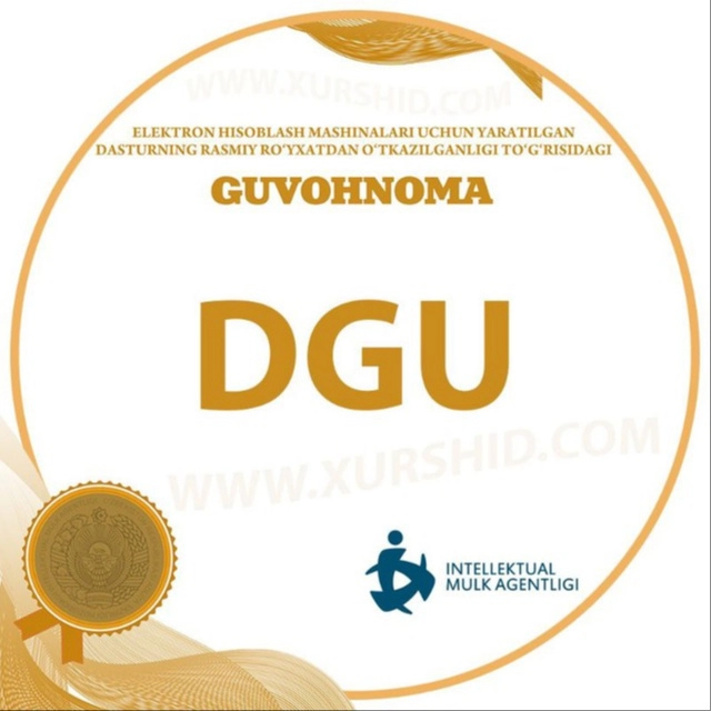 📃 Dasturiy mahsulotlar, Elektron o'quv va uslubiy qo'llanmalar uchun mualliflik Guvohnomasi DGU olib berish xizmati.